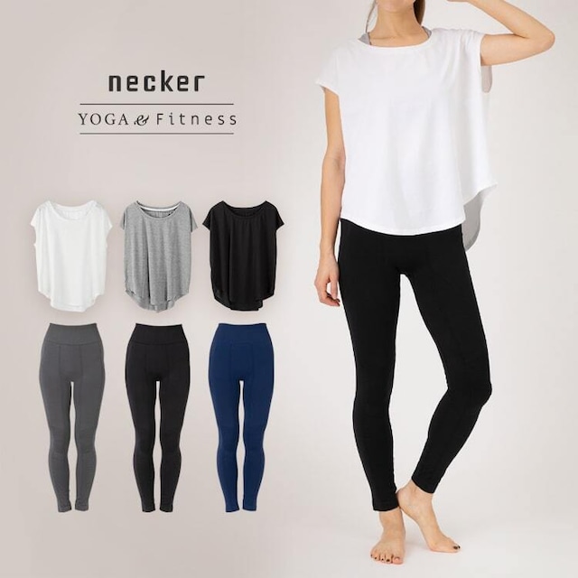 ヨガやフィットネスですぐに使える上下セット。ベーシックなカラー、シンプルなコーディネートで着回しやすく、これからヨガを始める初心者や上下の相性を考えるのが面倒な方におすすめです。動きやすく吸汗性、速乾・放湿性に優れ、汗による肌のべたつきを軽減し、蒸れにくく、さらりとした着心地のフィットネスウェアです。 素材: [トップス] ポリエステル 90% / スパンデックス10% [レギンス] ナイロン 94% / スパンデックス6% サイズ:M , L カラー: [トップス] ホワイト / グレー / ブラック [レギンス] ネイビー / グレー / ブラック