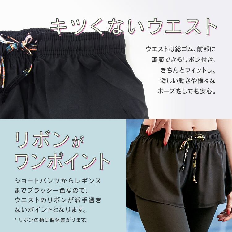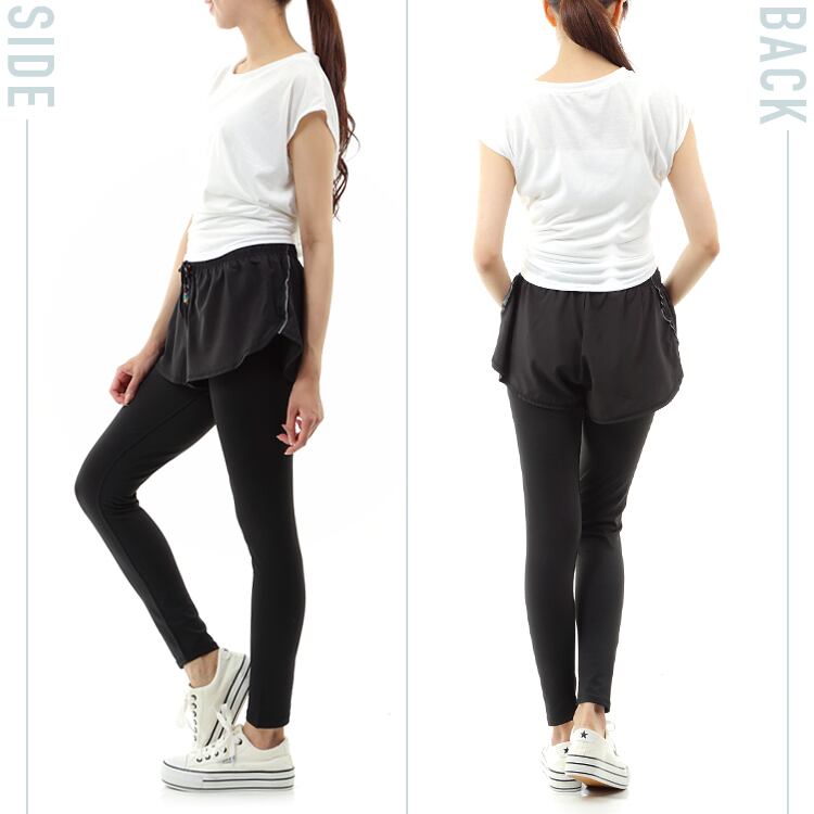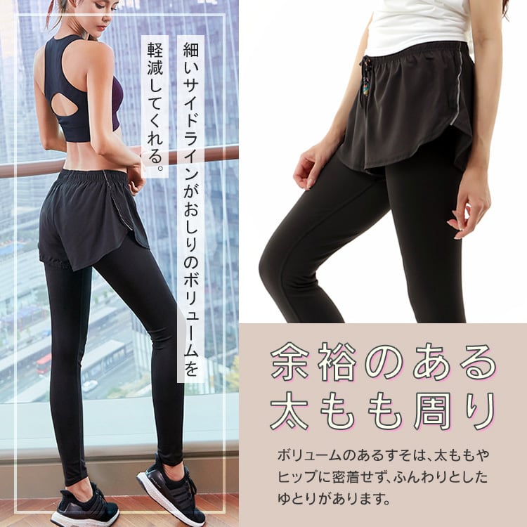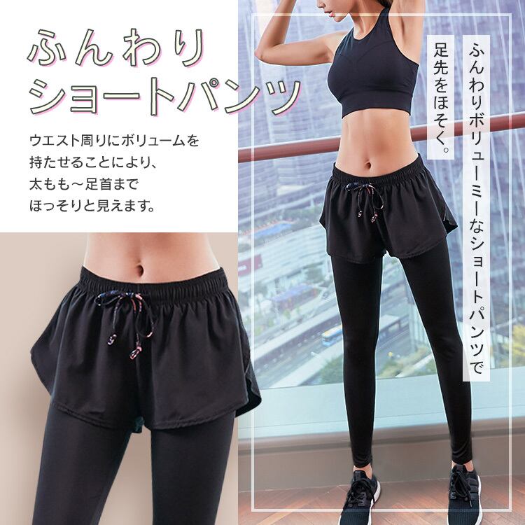 ソフトで 伸縮 速乾 に優れた素材を使用し、肌触りが良く、汗をかいても爽やかに過ごせる ヨガパンツ 。ショートパンツ が ヒップライン をカバーしてくれるので、ジム で運動をしたいけどおしりや太もも周り、生足は出したくないなんて方にもおすすめです。ショートパンツ はとても軽い素材なので、レギンス だけ履いてるような感じで ヨガ や ランニング 、ジムウェア に最適な レギンスパンツです。