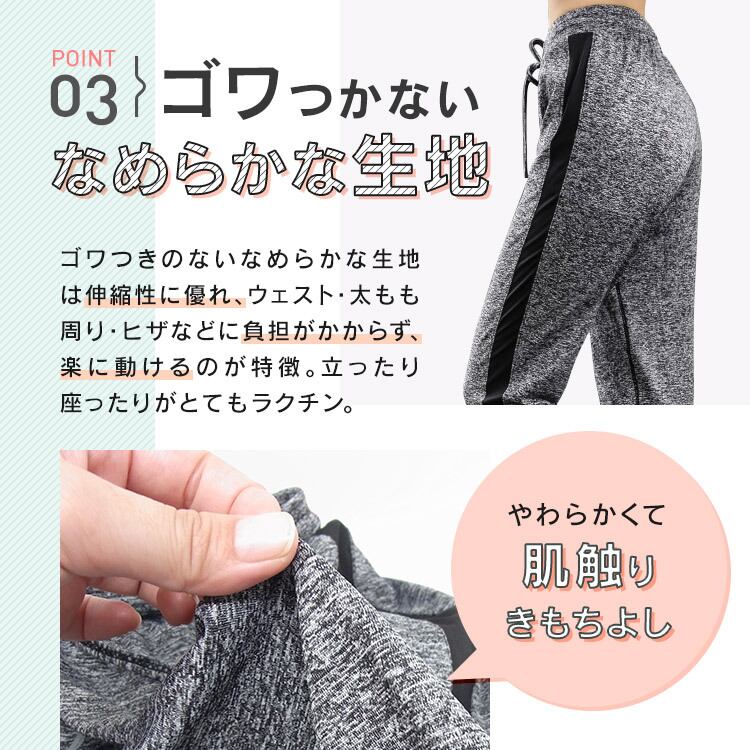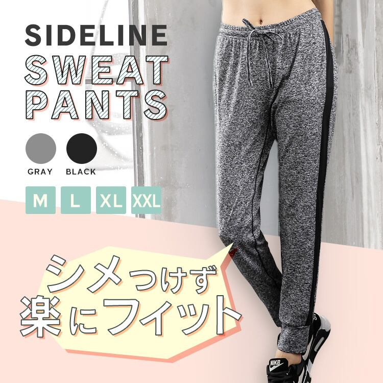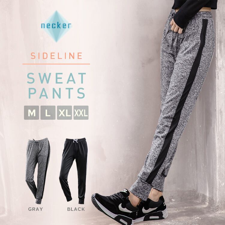 サイド ライン と ジョガー シルエット が アスレジャー コーデに相性抜群な、ラインパンツ です。ウエスト は ゴム仕様 で 調節可能 な紐が付いてます。 ハイウエスト にしたり、ゆったり締めて リラックス にもご使用になれます。裾にかけて細くなっていくので脚を綺麗に見せてくれ、スポーティー でスタイリッシュなコーデを可能にします。