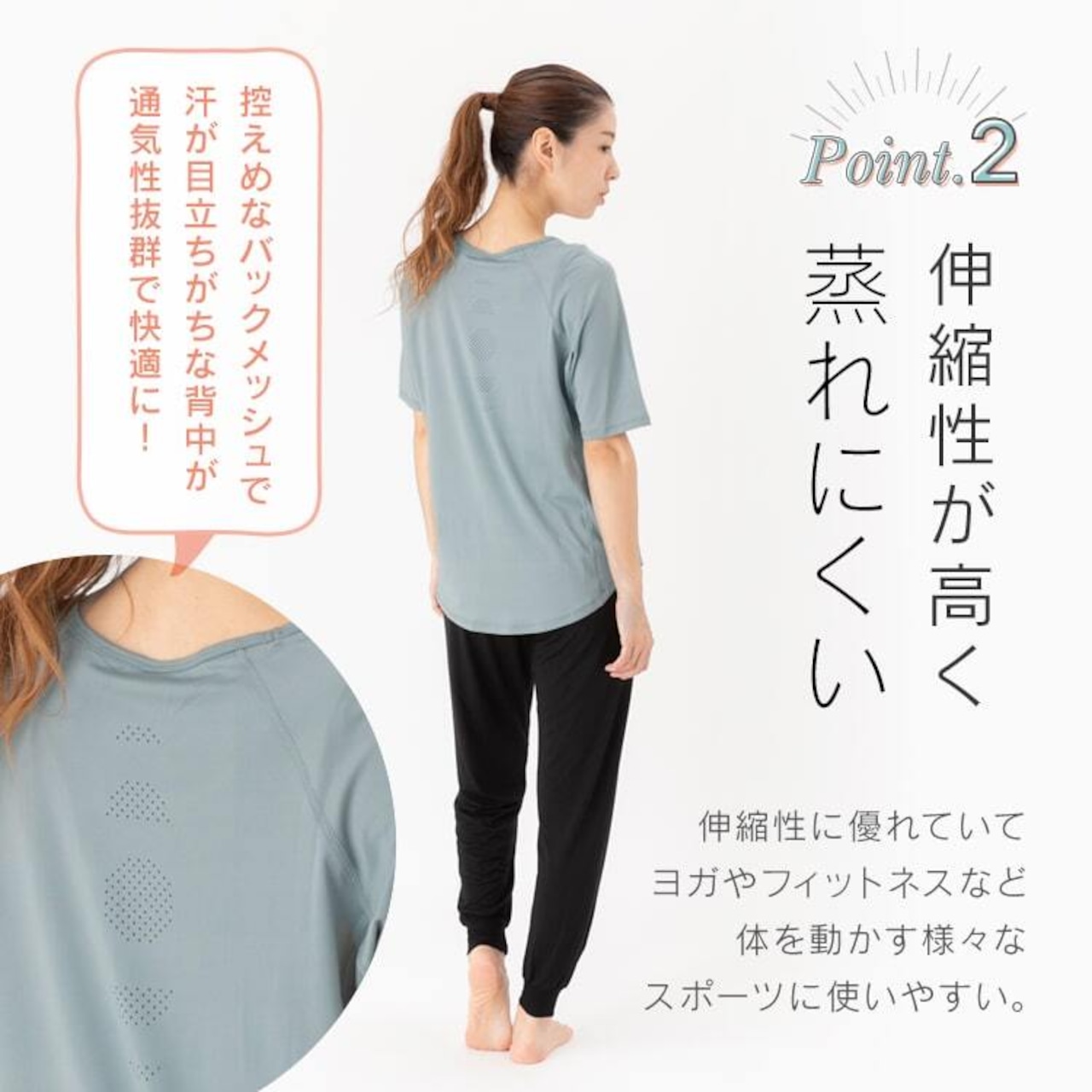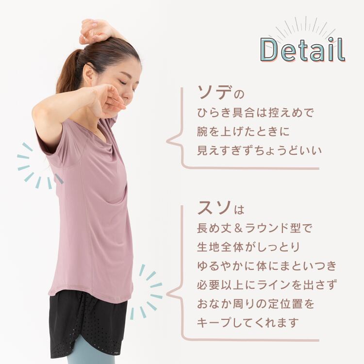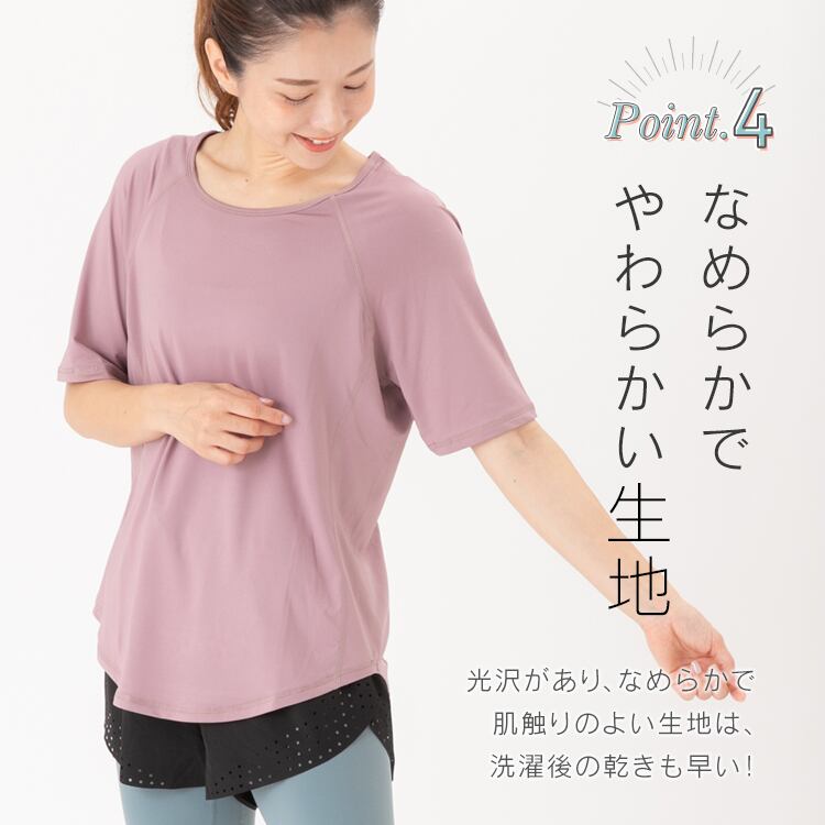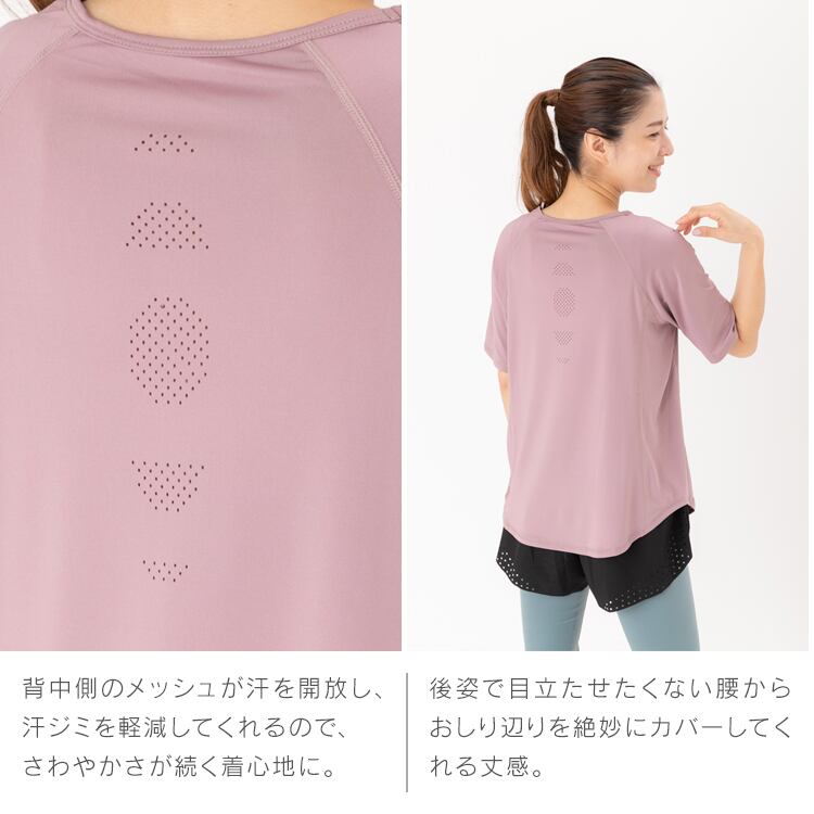 ボディラインを拾わずゆったりルーズに着こなせる、シンプルなトップス。肩がつっぱらないデザインで、腕の動きを妨げない楽な着心地。柔らかくスルっとした肌触りの生地は、伸縮性に優れ蒸れにくく、さらにバックメッシュが汗の不快感から解放してれます。